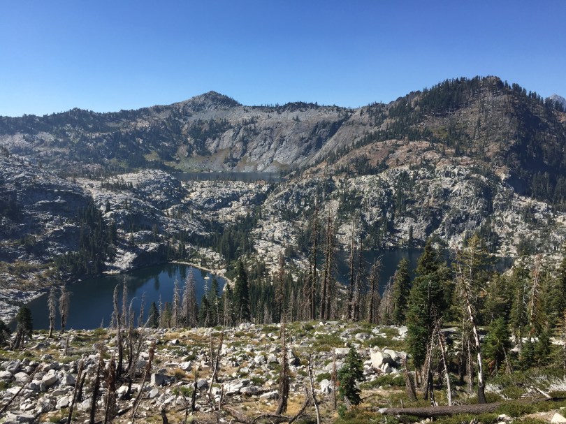 View of Lower and Middle Caribou Lakes from trail to Upper Caribou Lake
