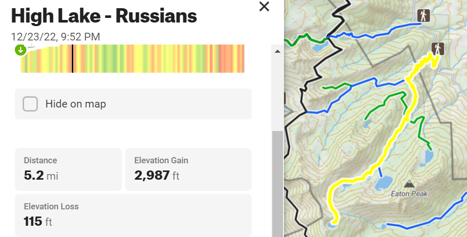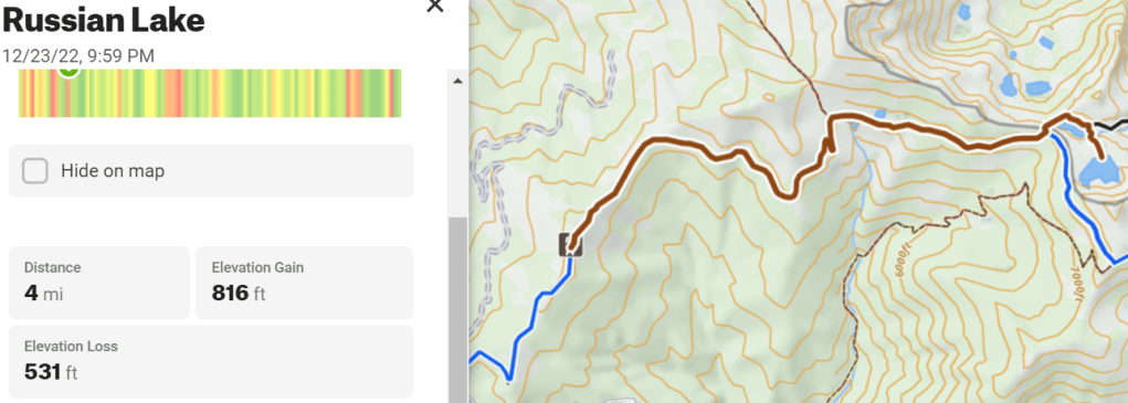 High Lake from Duck Lake Trailhead via Little Duck Lake = 5.2 miles w/XC